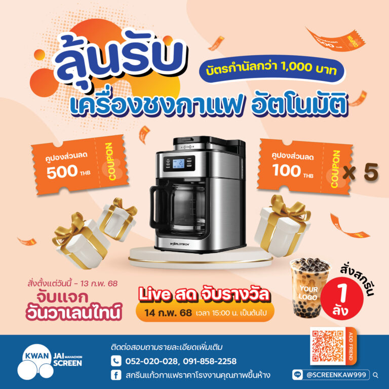 โรงงานสกรีนแก้วขวัญใจมหาชน จัดโปรโมชั่น วาเลนไทน์ แจกเครื่องชงกาแฟกึ่งออโต และ รางวัลส่วนลดเงินสดเพียบ